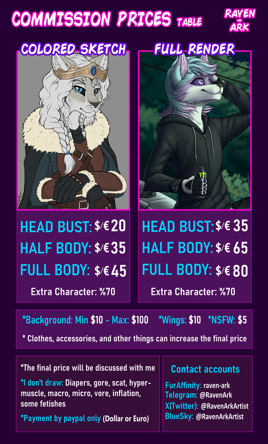 (Descriptions are based on the complexity of a full render complete artwork, however, requests for simpler styles of art are considered as “complete artworks” too)Refund within the delivery period:* A full refund can be made if the drawing has not yet been started or the initial sketch has not been presented only;