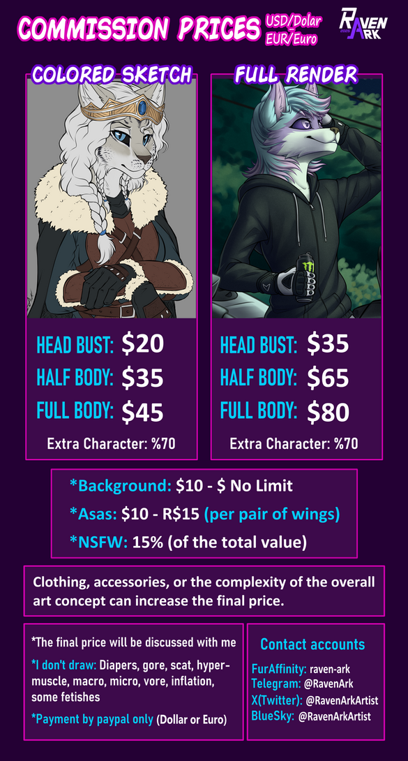 (Descriptions are based on the complexity of a full render complete artwork, however, requests for simpler styles of art are considered as “complete artworks” too)Refund within the delivery period:* A full refund can be made if the drawing has not yet been started or the initial sketch has not been presented only;